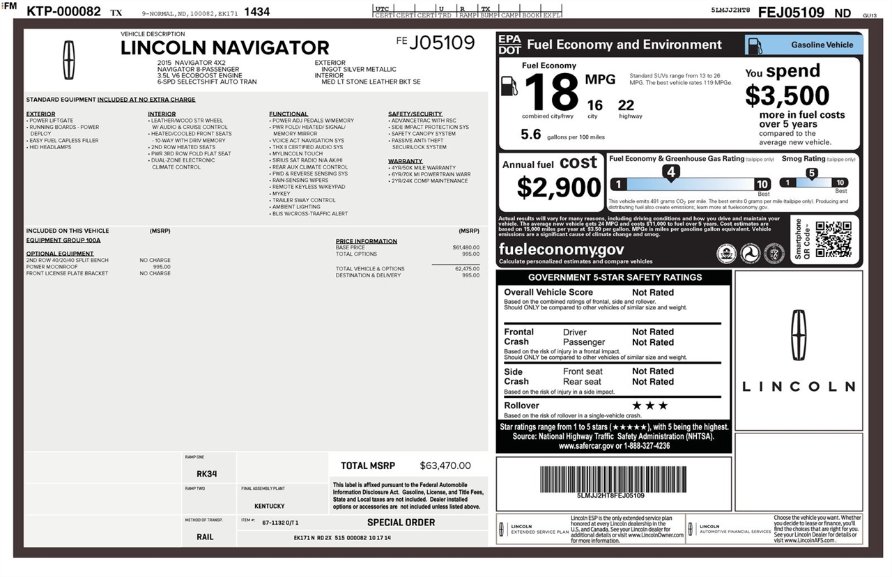 The 2015 Lincoln Navigator embodies luxury, power, and versatility in a full-size SUV built for those who expect sophistication and strength in equal measure. With its refined 3.5L EcoBoost engine, elegant craftsmanship, and advanced technology, the Navigator offers commanding performance and supreme comfort for every passenger.