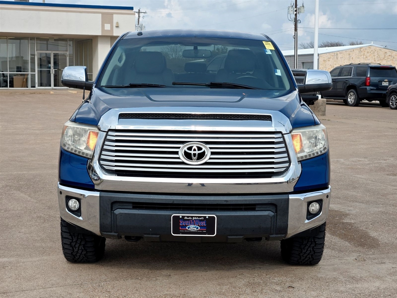 Discover the power and capability of the 2014 Toyota Tundra Limited CrewMax. This impressive 4x4 truck is equipped with an i-Force 5.7L V8 Flex Fuel engine that delivers exceptional performance and efficiency. With its striking blue exterior and a wealth of premium features, this Tundra is a true standout in the full-size truck segment.