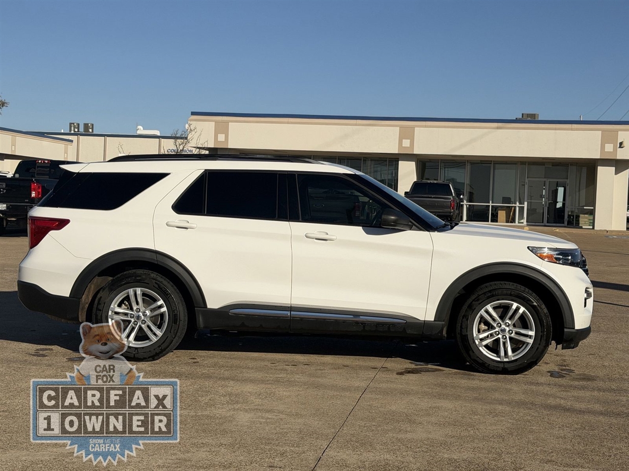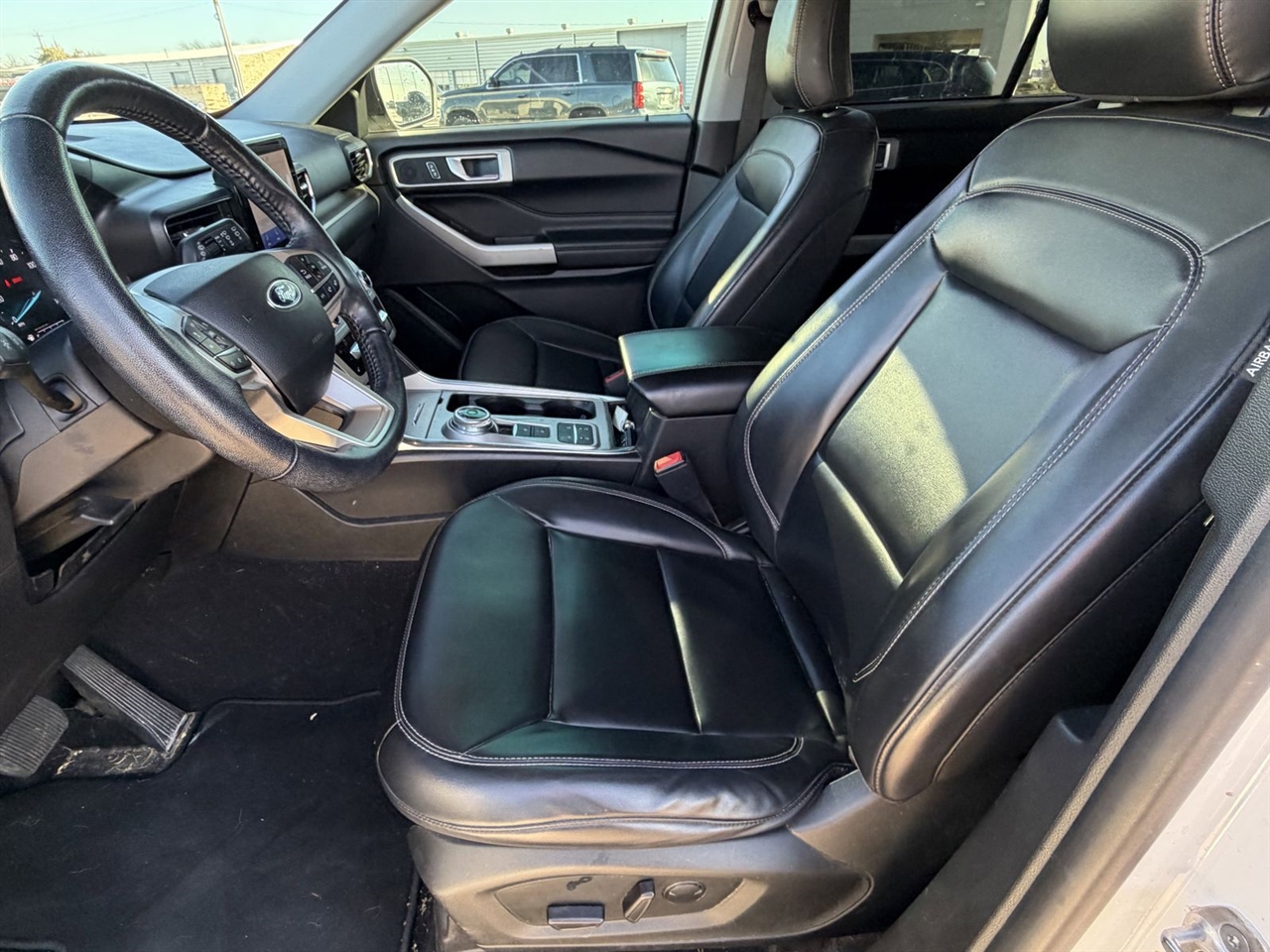 This 2021 Ford Explorer XLT in White comes with the following features: 2.3L EcoBoost I-4 10-Speed Automatic RWD Equipment Group 202A (Acoustic-Laminated Front Side Windows, ActiveX Captain's Chairs, Heated Steering Wheel, LED Fog Lamps, and Remote Start System), Ford Co-Pilot360 Assist+ (Evasive Steering Assist, Intelligent Adaptive Cruise Control, Speed Sign Recognition, and Voice-Activated Touchscreen Navigation System), 1st Row Heated Seats, 3.58 Non-Limited-Slip Rear Axle Ratio, 3rd row seats: bench, 4-Wheel Disc Brakes, 6 Speakers, ABS brakes, Air Conditioning, Alloy wheels, AM/FM radio: SiriusXM, AM/FM Stereo, Auto High-beam Headlights, Automatic temperature control, Brake assist, Bumpers: body-color, Compass, Delay-off headlights, Driver door bin, Driver vanity mirror, Dual front impact airbags, Dual front side impact airbags, Electronic Stability Control, Emergency communication system: SYNC 3 911 Assist, Exterior Parking Camera Rear, FordPass Connect, Four wheel independent suspension, Front anti-roll bar, Front Bucket Seats, Front Center Armrest, Front dual zone A/C, Front reading lights, Fully automatic headlights, Heated door mirrors, Heated front seats, Illuminated entry, Knee airbag, Leather steering wheel, Low tire pressure warning, Occupant sensing airbag, Outside temperature display, Overhead airbag, Overhead console, Panic alarm, Passenger door bin, Passenger vanity mirror, Power door mirrors, Power driver seat, Power Liftgate, Power passenger seat, Power steering, Power windows, Rear air conditioning, Rear anti-roll bar, Rear reading lights, Rear window defroster, Rear window wiper, Remote keyless entry, Roof rack: rails only, Security system, Speed control, Speed-sensing steering, Speed-Sensitive Wipers, Split folding rear seat, Spoiler, Steering wheel mounted audio controls, SYNC 3 Communications & Entertainment System, SYNC 3/Apple CarPlay/Android Auto, Tachometer, Telescoping steering wheel, Tilt steering wheel, Traction control, Trip computer, Unique Cloth Captain's Chairs, Variably intermittent wipers, and Wheels: 18" 5-Spoke Sparkle Silver-Painted Alum. Odometer is 9945 miles below market average!